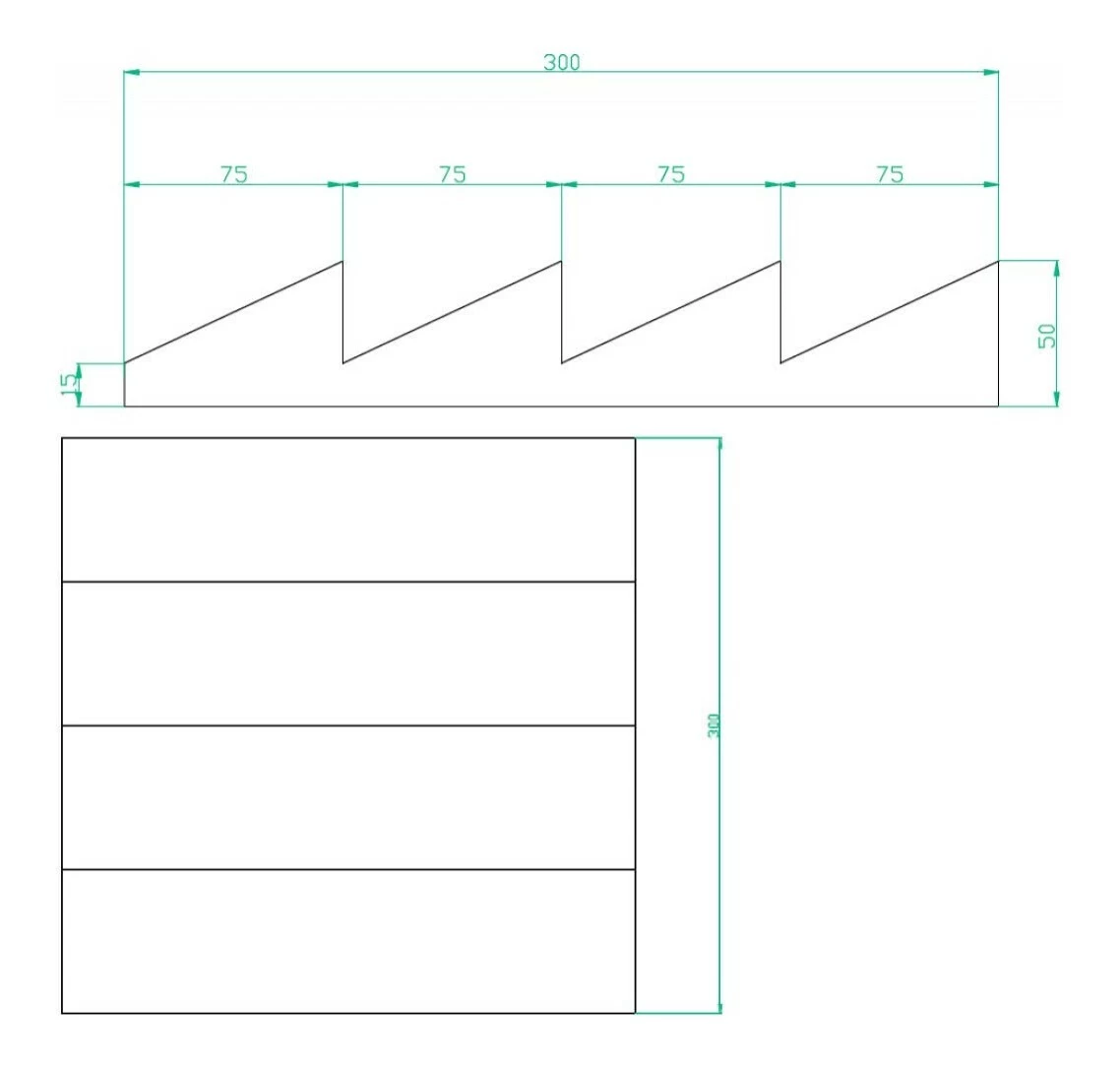 - Thickness: 50mm (at peak of wedge) to 10mm (at trough of wedge)