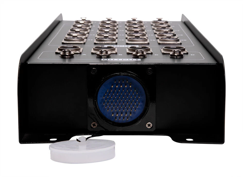 This multicore and stage box is configured with 20 balanced XLR send and 4 balanced XLR or TRS return channels. The system includes a detachable 24-way multicore cable with multipin connectors, a rugged metal stage box housing and an inverse-gendered XLR breakout fan for patching to your mixer. All the connectors are quality Ningbo Neutrik connectors to ensure consistent high performance in heavy use environments.