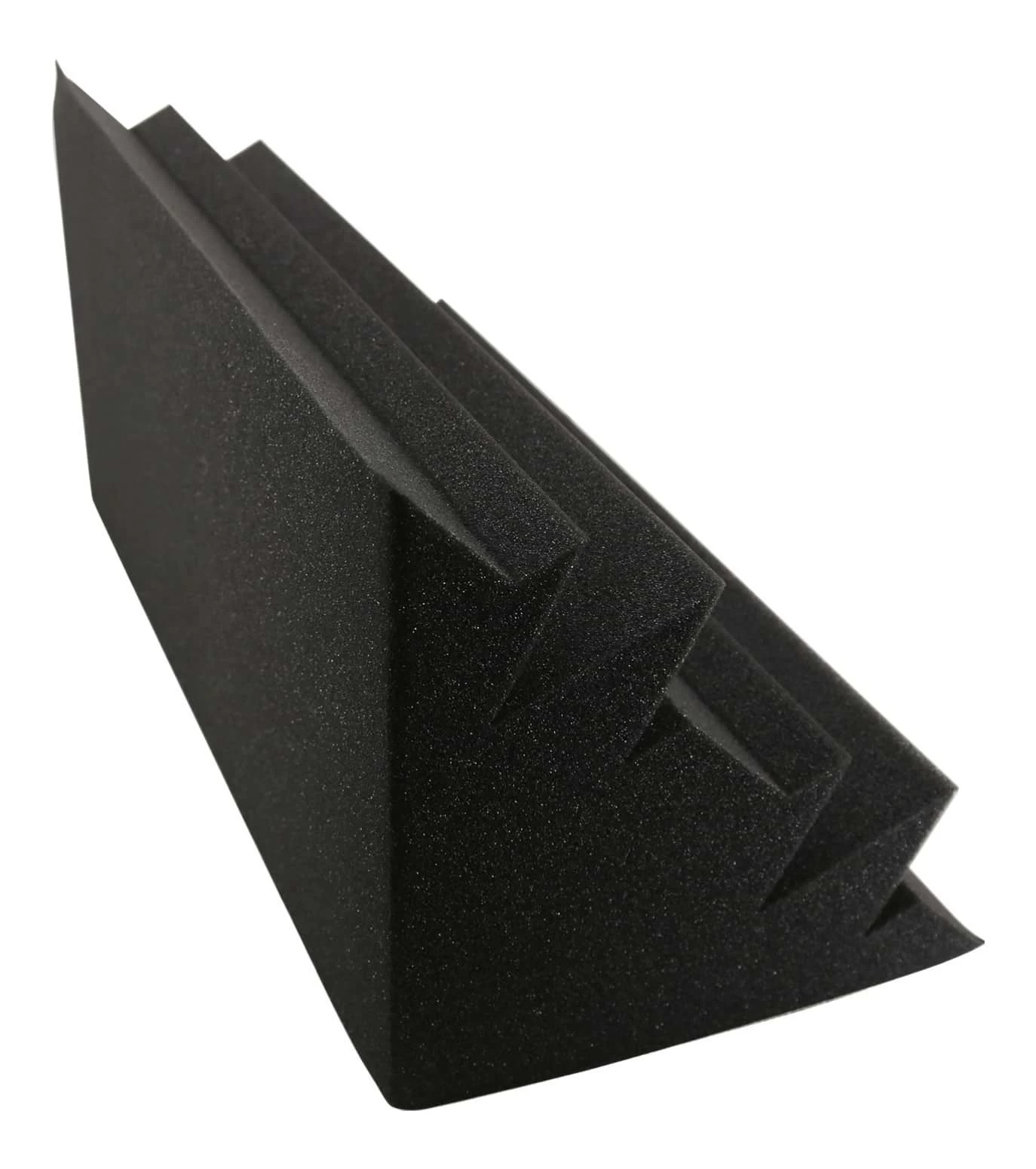 Designed to maximize the effectiveness of acoustic treatment, these corner pieces fit out the corners of a studio with acoustic foam, to give ultimate treatment coverage in an acoustic space. The corners in a loud room usually harbour a lot of reflective sound waves, particularly low frequency waves, so it makes sense to focus sound absorption in these areas, catching the greatest amount of unwanted sonic reflections.