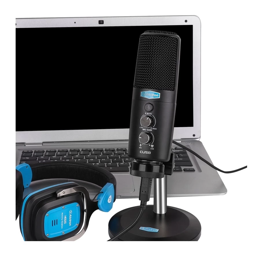 The Alctron CU58 is a cardioid USB microphone. It includes a monitor mixing control switch, a headphone volume control knob, a microphone gain adjustment knob and a microphone mute button. These four switches and buttons make using it much more practical.