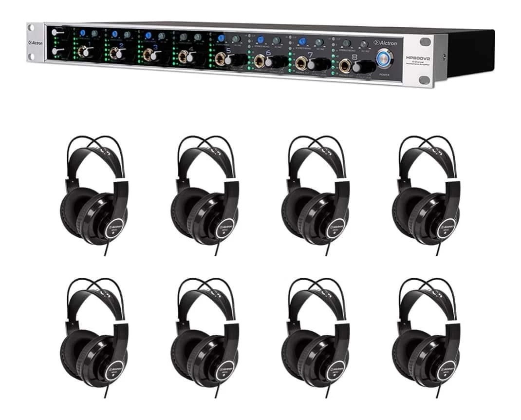 Alctron 8 Channel Studio Headphone Amplifier with 8 Alctron Studio Headphones – Combo Pack