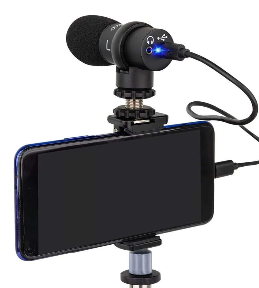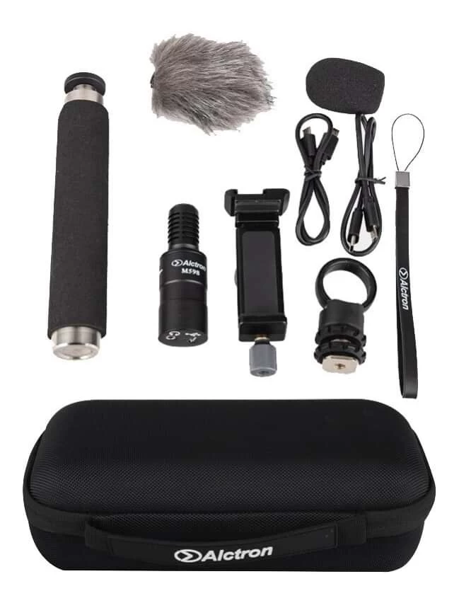 The Alctron M598 is a high quality condenser microphone combined with a phone clamp and a slim handle stand. The twin-capsule design for true stereo signal. Cardioid polar pattern utilising mid-side recording design for a wider pickup range. 3.5mm Headphone output for monitoring. The audio signal and phantom power are transferred via USB. USB-C and Micro USB cables included, suitable for use with all Android phones as well as Windows and Mac computers.