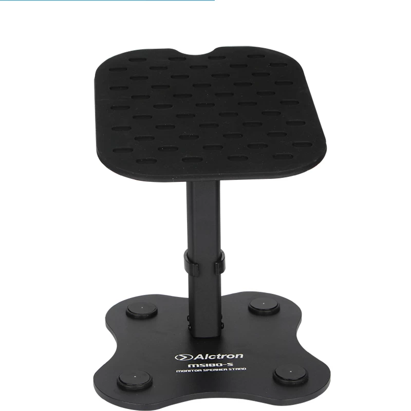 The MS180-5 are a high quality desktop monitior stand designed for 5″ studio monitor speakers, constructed with a heavy metal base to ensure stability and includes a padded shelf to isolation from vibrations and reducing the need for isolation pads. The MS180 speaker stands have the capacity to be height and angle adjustable. Made from solid steel and aluminium, these sturdy stands allow you to set the optimal position for your speakers. Ideal for professional or home use, it can be used in studio or home theatre monitoring.