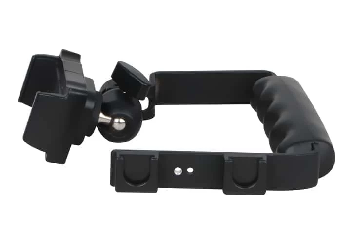 - Two hot shoe mounts along the top allow for easy attachment of lighting and audio gear