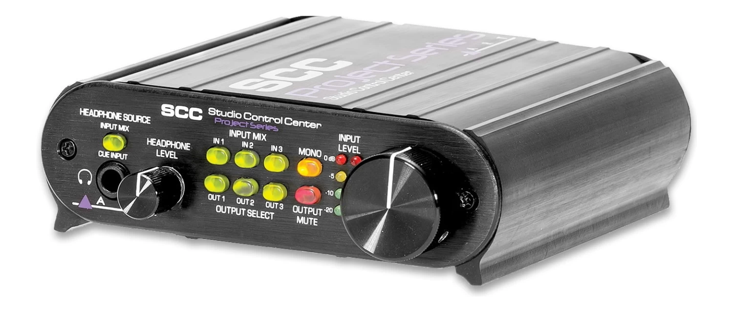 Additional controls on the SCC include a master mute switch, and a mono switch allowing you to sum the stereo inputs to mono to check phase in any mix. In a typical studio setup, one set of inputs on the SCC would connect to the main output of your DAW workstation or computer audio card. Secondary outputs or headphone output would be connected to the SCC’s Cue Mix input allowing for a second, completely separate headphone mix. Other sources (keyboard, iPod, analog sub mixer etc) can connect to the additional stereo inputs.