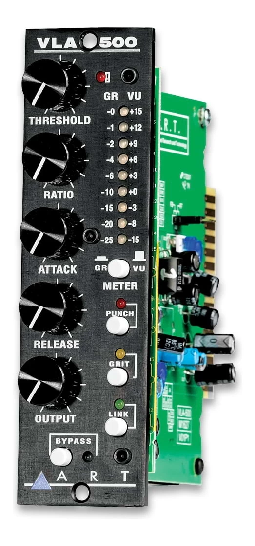 The VLA-500 brings the same VCA-less Vactrol based compression circuit used in ART’s legendary Pro-VLA, putting to a convenient 500 Series format for the first time. Capable not only of delivering incredibly smooth compression and overall dynamic control, the VLA-500 also offers two user selectable tone shaping circuits making it one of the most versatile signal processors in your 500 Series rack.