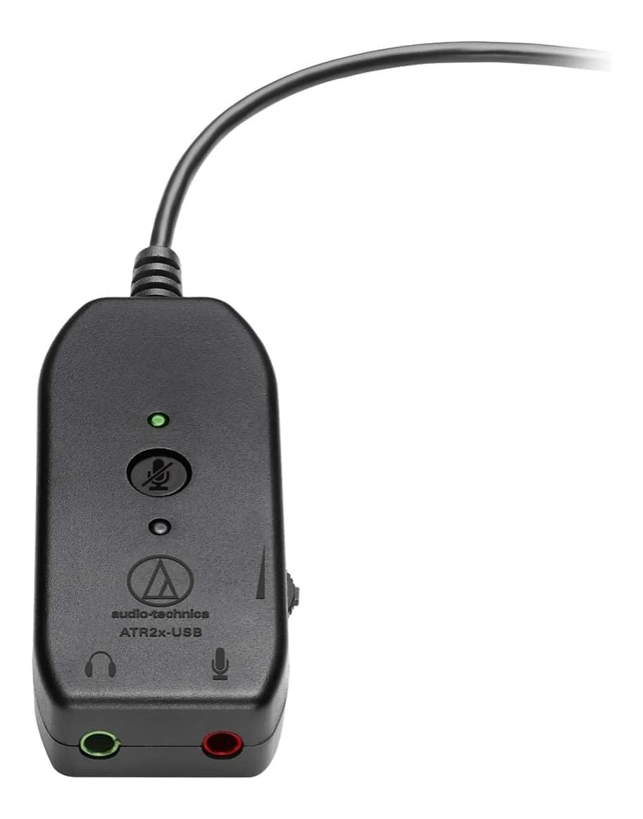 Turn any pair of headphones or mono microphone with a 3.5 mm (1/8″) plug into a USB-compatible device. The ATR2x-USB audio adapter is equipped with 3.5 mm (1/8″) microphone and headphone inputs and a USB-C output, plus a mute button and volume control. A USB-C to USB-A adapter is also included for greater compatibility. The ATR2x-USB provides plug-in power for microphones that require it.