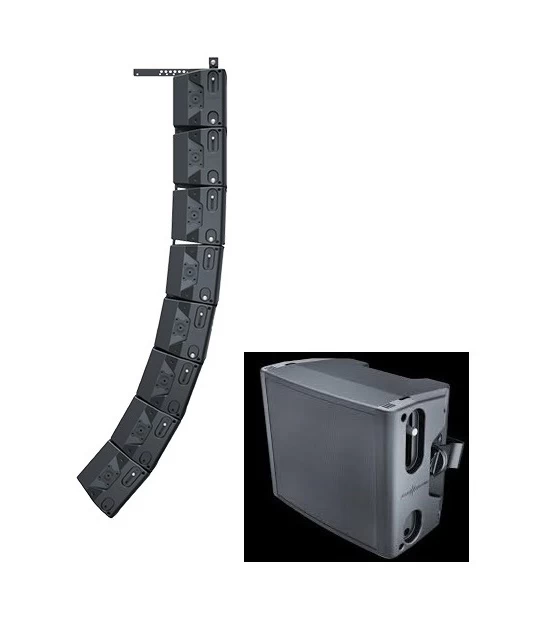 The Artist T8 has a modified Beyma 8 “LF / MF and four 1” HF drivers, which are arranged vertically in a line in front of the LF / MF driver. It has integrated flight hardware so that several systems can be connected to one another to form a vertical line array. An optionally available flying frame is then simply attached to the top module with the help of the flying hardware.