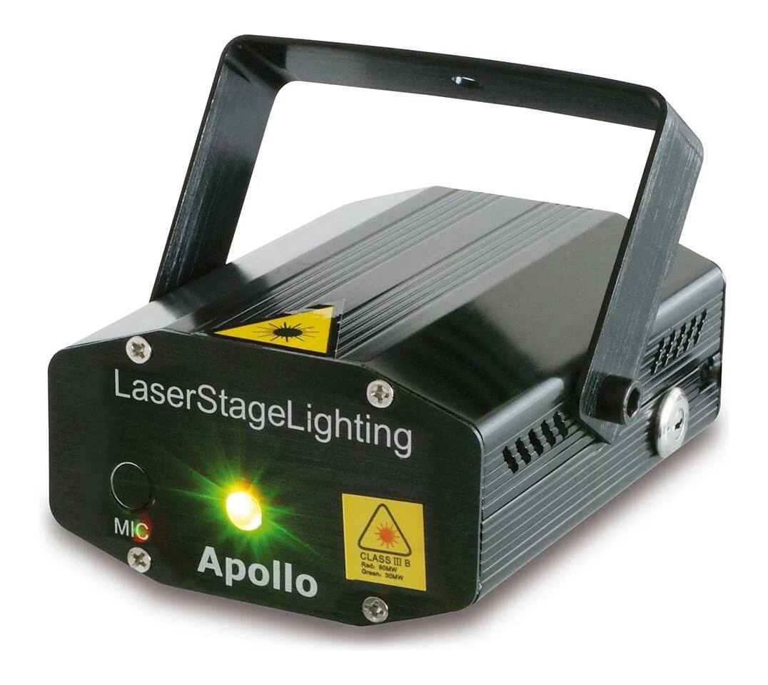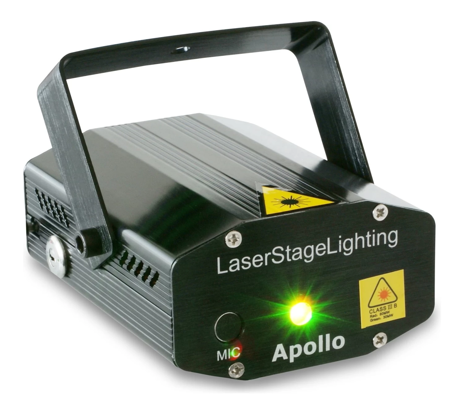 The Beamz Apollo Multipoint Laser is a compact black mini laser of class 3B, offering a two colour laser for your dance floor, bar, or home party. It can create an adjustable star sky effect in red and green. Adjustable motor speed, and sound activation.