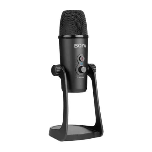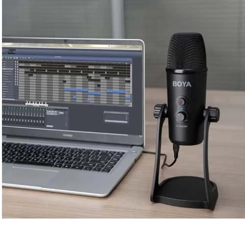 With its triple capsule design, the BOYA PM700 is a USB condenser microphone, compatible with Windows and Mac computers. Select either omni-directional, cardioid, stereo and bi-directional pickup modes via the pattern selector. Mute button and H/P input.