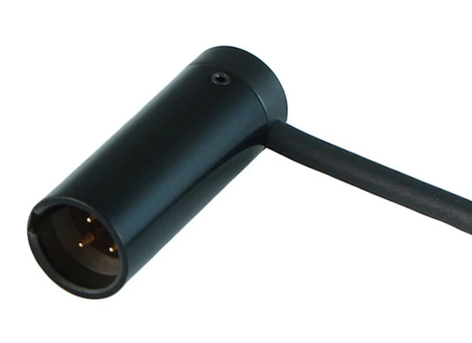The Cable Techniques CT-LPS-3M-K is a low profile, right angle male Mini XLR 3-pin connector, with outlet from either 0° or 180° via the release button and adjustable side-exit. Matte black shell, gold pins. Black cap colour. Perfect for audio into camera