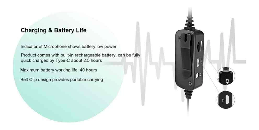 The LCM6LD is a pair of omnidirectional high quality condenser lavalier microphone, and feature high sensitivity, and a wide range of frequency response. It is compatible with all iOS devices as a plug and play. With a microphone indicator that shows battery llife, it comes with a built-in rechargeable battery, and can be fully quick charged by Type-C USB in about 2.5 hours. A maximum battery can provide up to of 40 hours of working life.