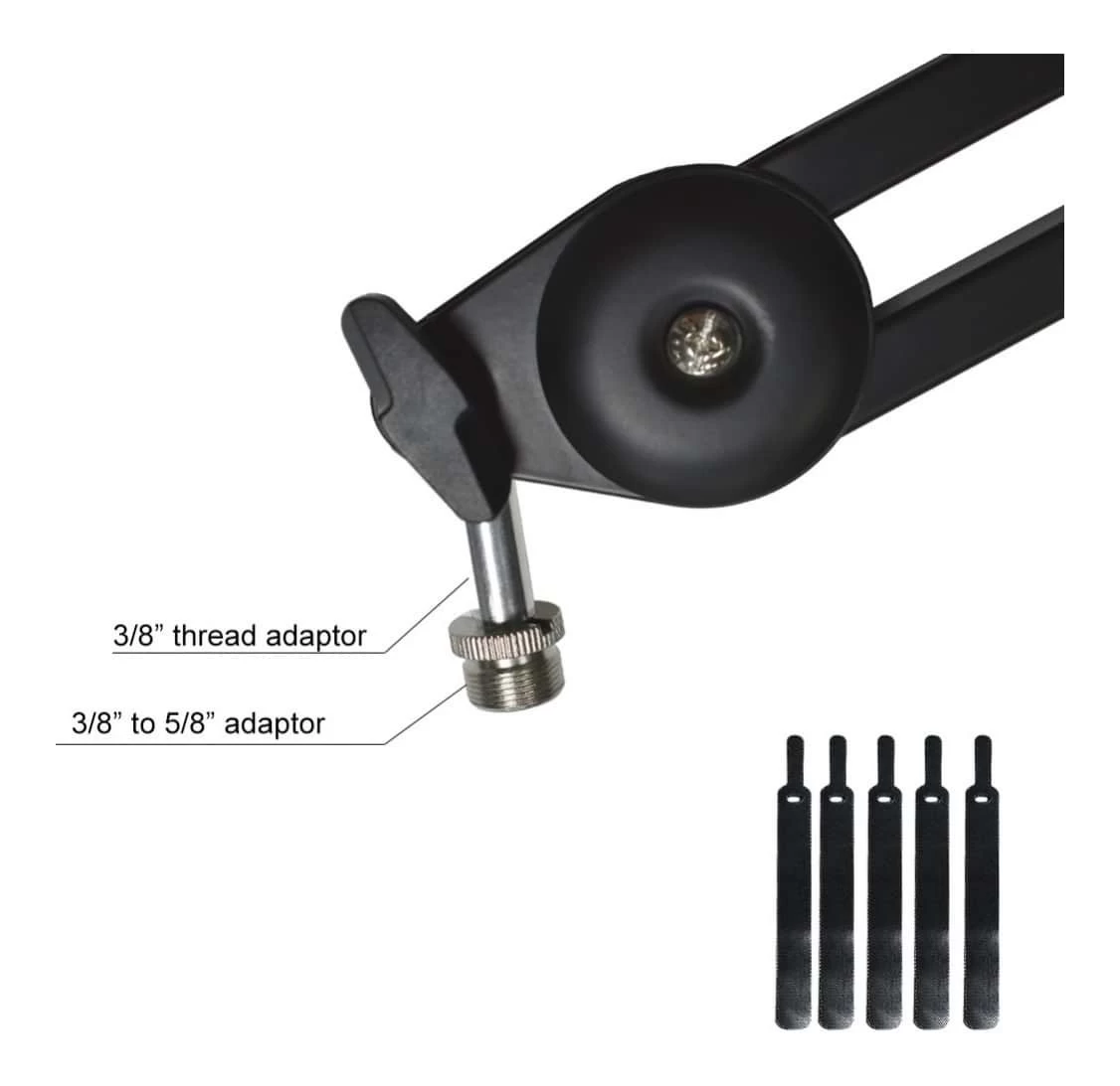 - Boom arm offers 3/8”and 5/8”mic clip threading
