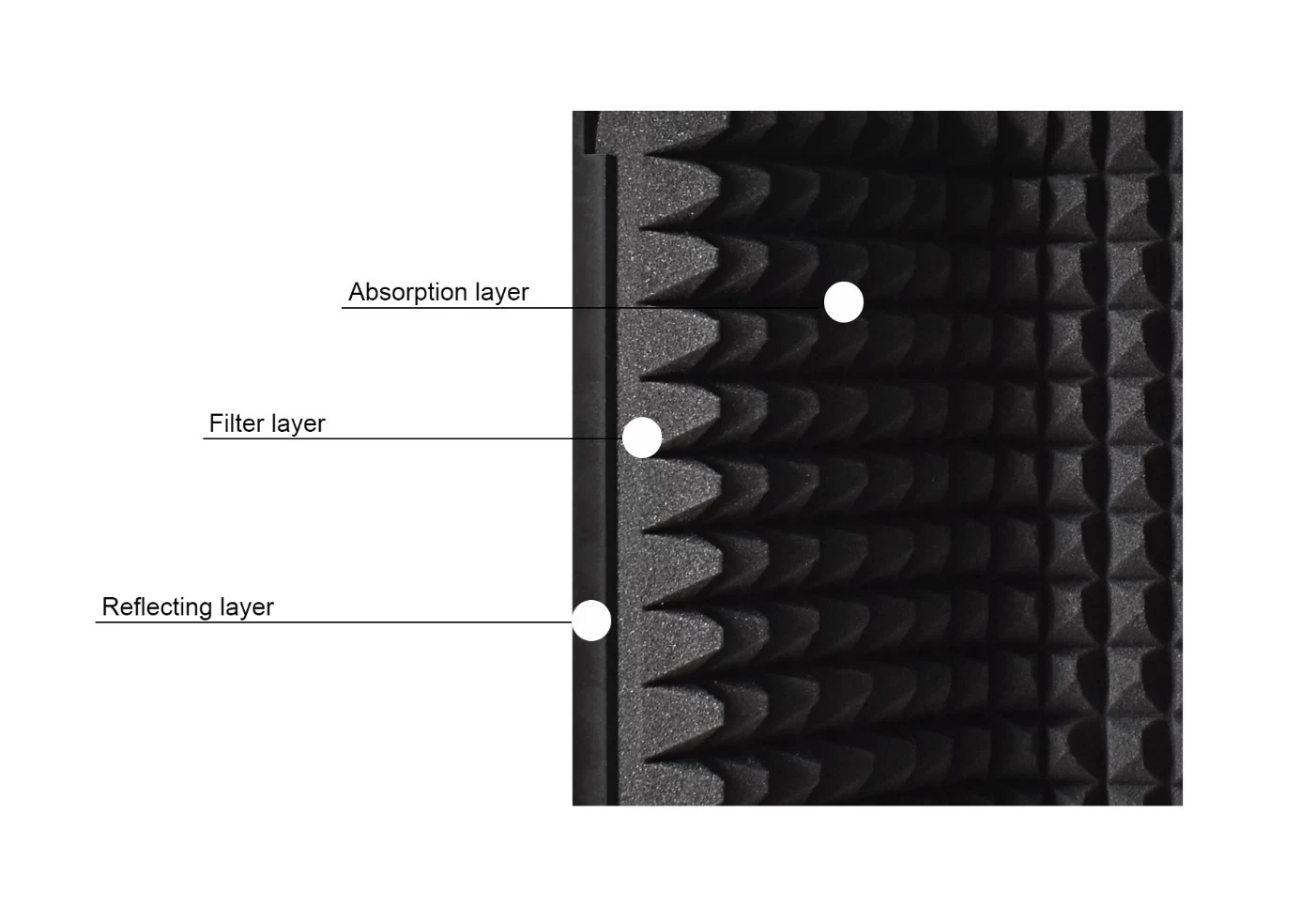 The CKMOVA SRF5 is a professional microphone reflection filter sound shield, made up of 5 adjustable panels for customised placement. With its High-density open-cell acoustic-foam layer, it is excellent for absorbing unwanted room noise and reflections.