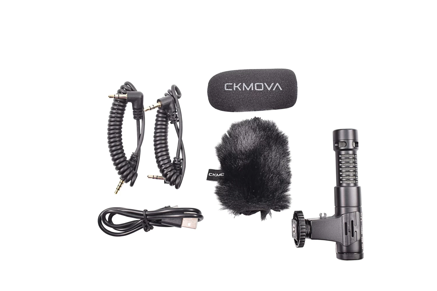 The CKMOVA VCM3 is a directional condenser microphone for DSLR cameras and smartphones. It has NCR noise reduction technology and superior noise floor suppression. A headphone jack for real-time monitoring. +10 dB audio switch, and built-in battery, providing 20 hours operating time on a full charge.