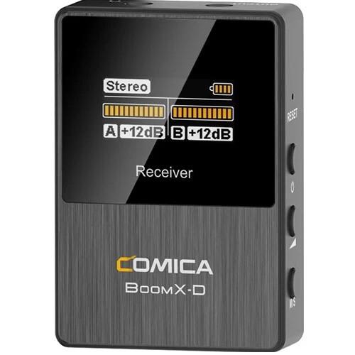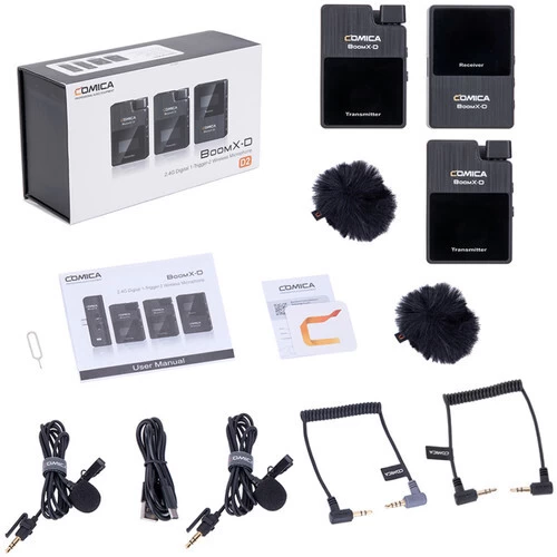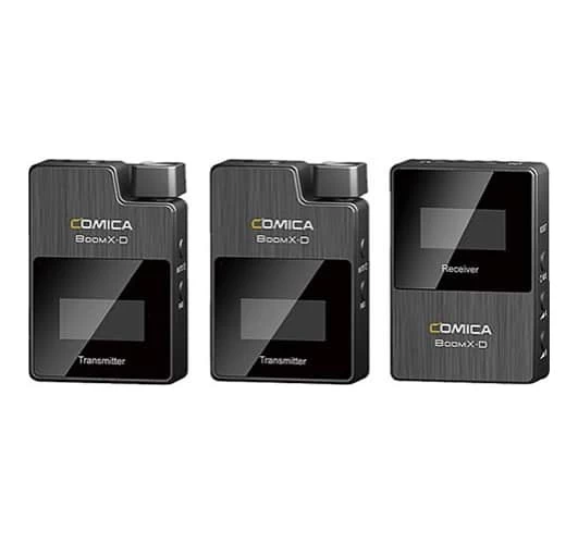 Ideal for vloggers, podcasters, and journalists, the COMICA BoomX-D2 is a wireless lapel microphone kit designed for 2 speakers using smartphones and cameras. Real-time audio monitoring, broadcast quality, and up to 50m range. Internal rechargeable batteries last up to 5 hours.