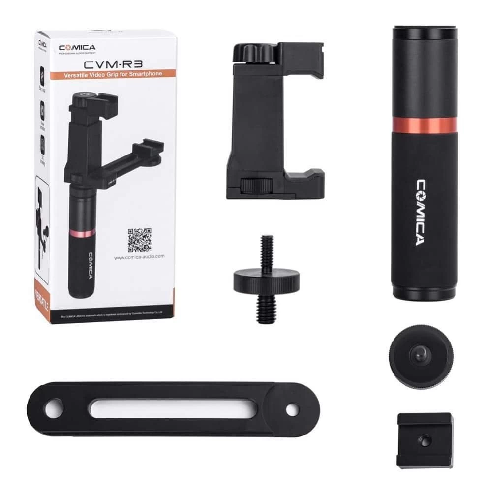The CVM-R3 is compatible with versatile handheld smartphone clamp that support many smartphone models like iPhone, Samsung, Huawei, LG, HTC etc. It has powerful functions stylish appearance and convenient installation. It utilize the balancing technology for design, it can effectively reduce the negative influence of the human body shaking and reduce Smartphone’s turbulence.