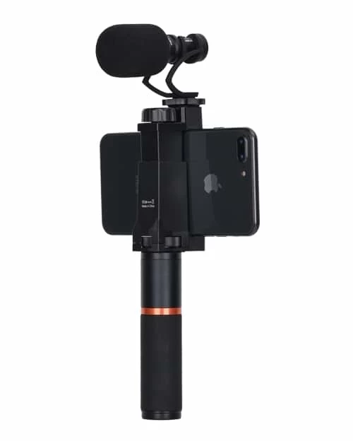 This excellent combines a compact shotgun microphone with a phone clamp and a handle grip. The shotgun microphone features a cardioid pickup pattern that captures the sound directly in front of the mic, while rejecting unwanted ambient noise. It also features a built-in shockmount that reduces vibration noise when moving about. The mic plugs into iOS/Android smartphones that are equipped with a 3.5mm headphone jack, and it yields a significantly improved sound compared to the built-in mics on these devices. This cost-effective solution enables you to create your own portable smartphone video rig, great for improving the quality of your YouTube videos, Facebook Live streams, and interviews when shooting at home or on the go. Made of lightweight and durable aluminium.