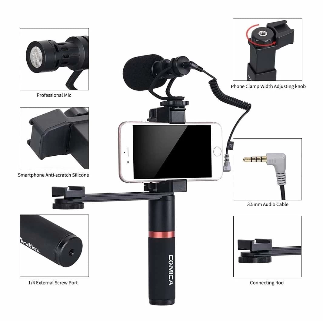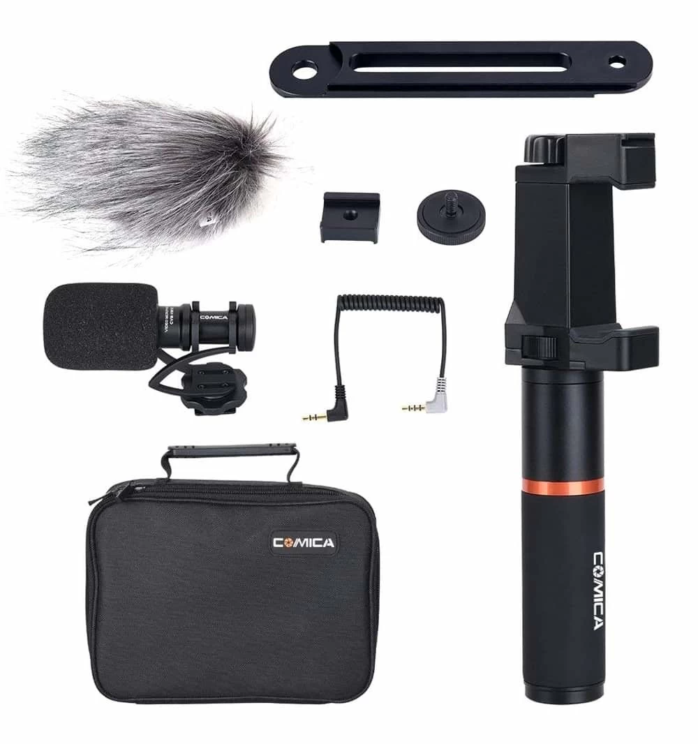 The perfect accompaniment for filming with smartphones or cameras. The COMICA CVM-VM10-K4 comes with a cardioid shotgun microphone, accompanied with a smartphone clamp handle with a connecting rod. Great for live streaming on the run and mobile journos!