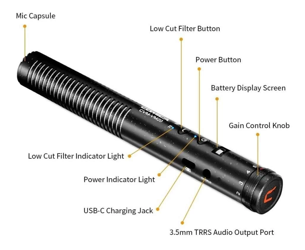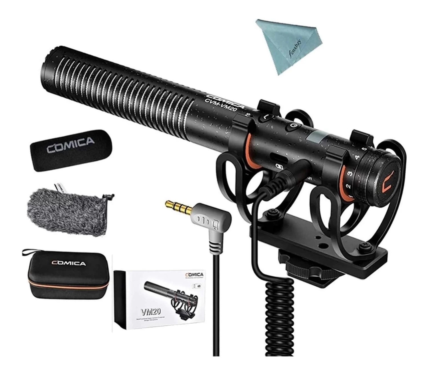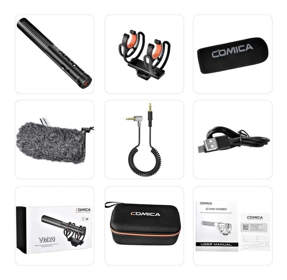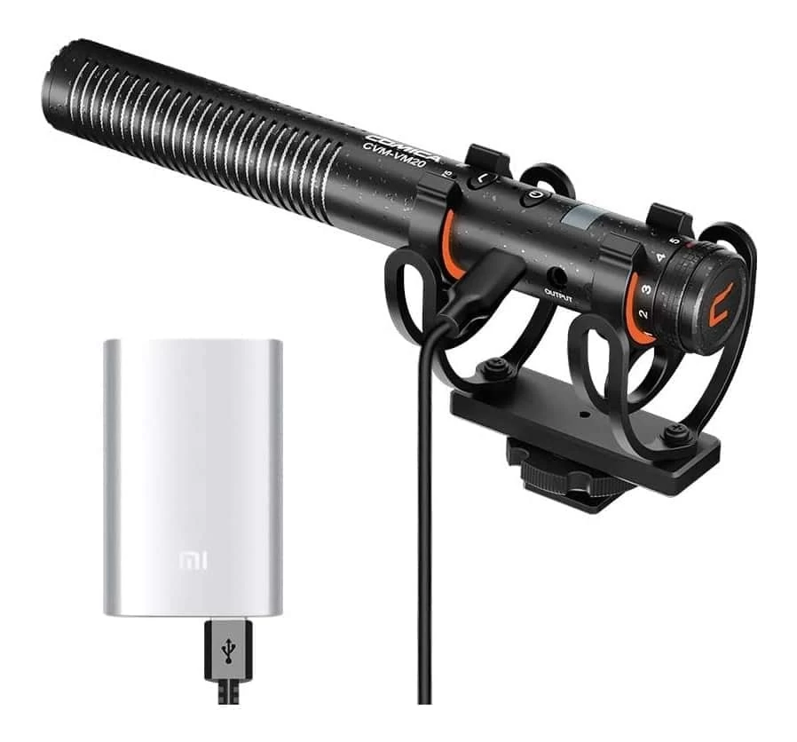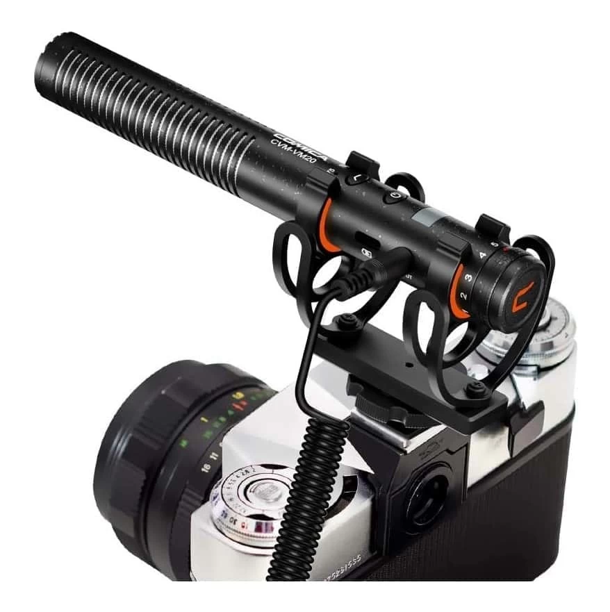 The Comica VM20 is a multi-functional super cardioid condenser shotgun microphone. It is designed with a smart 3.5mm interface, universal for mobile phones and cameras, and the OLED display screen can real-time monitor the battery for 60 hours.