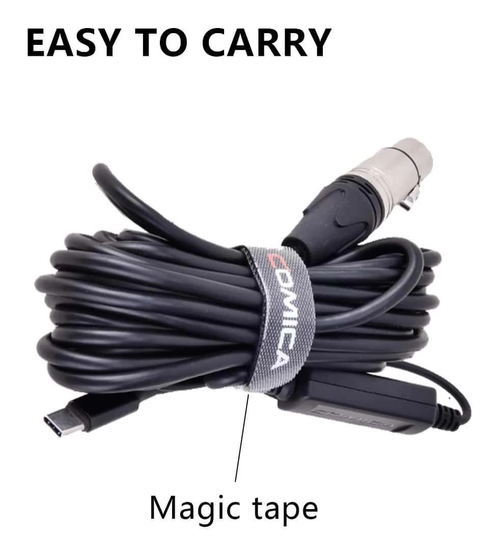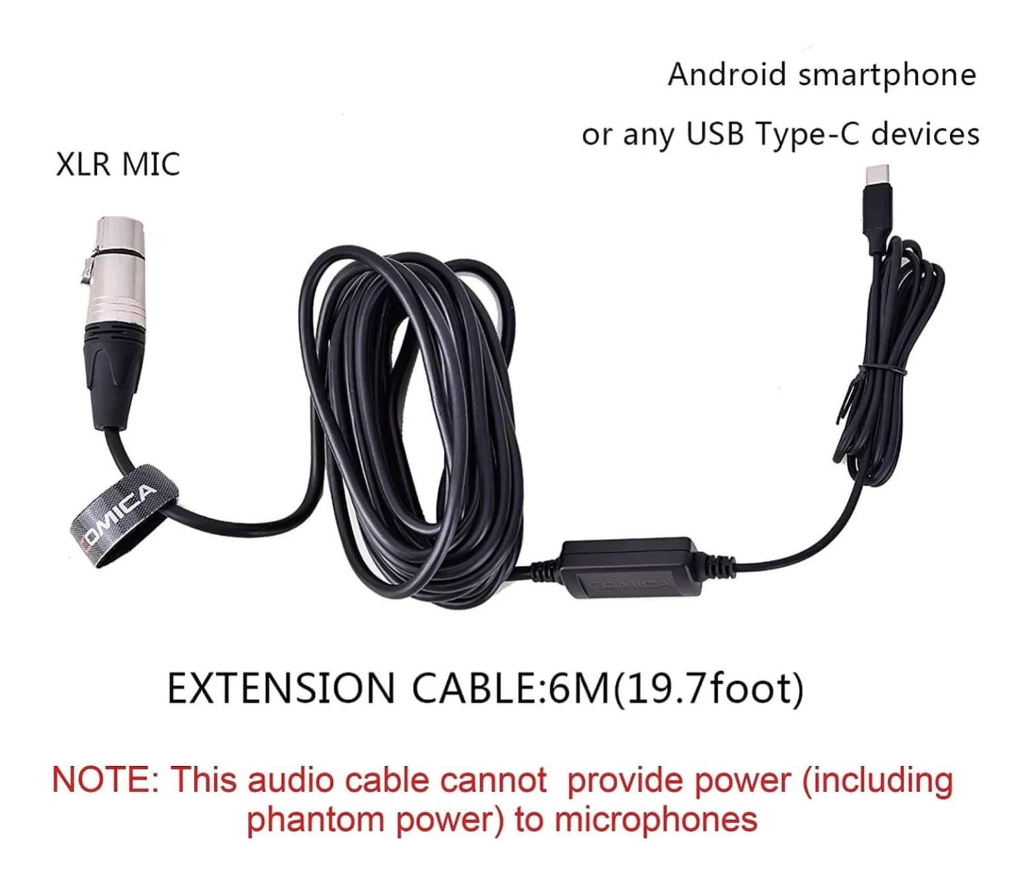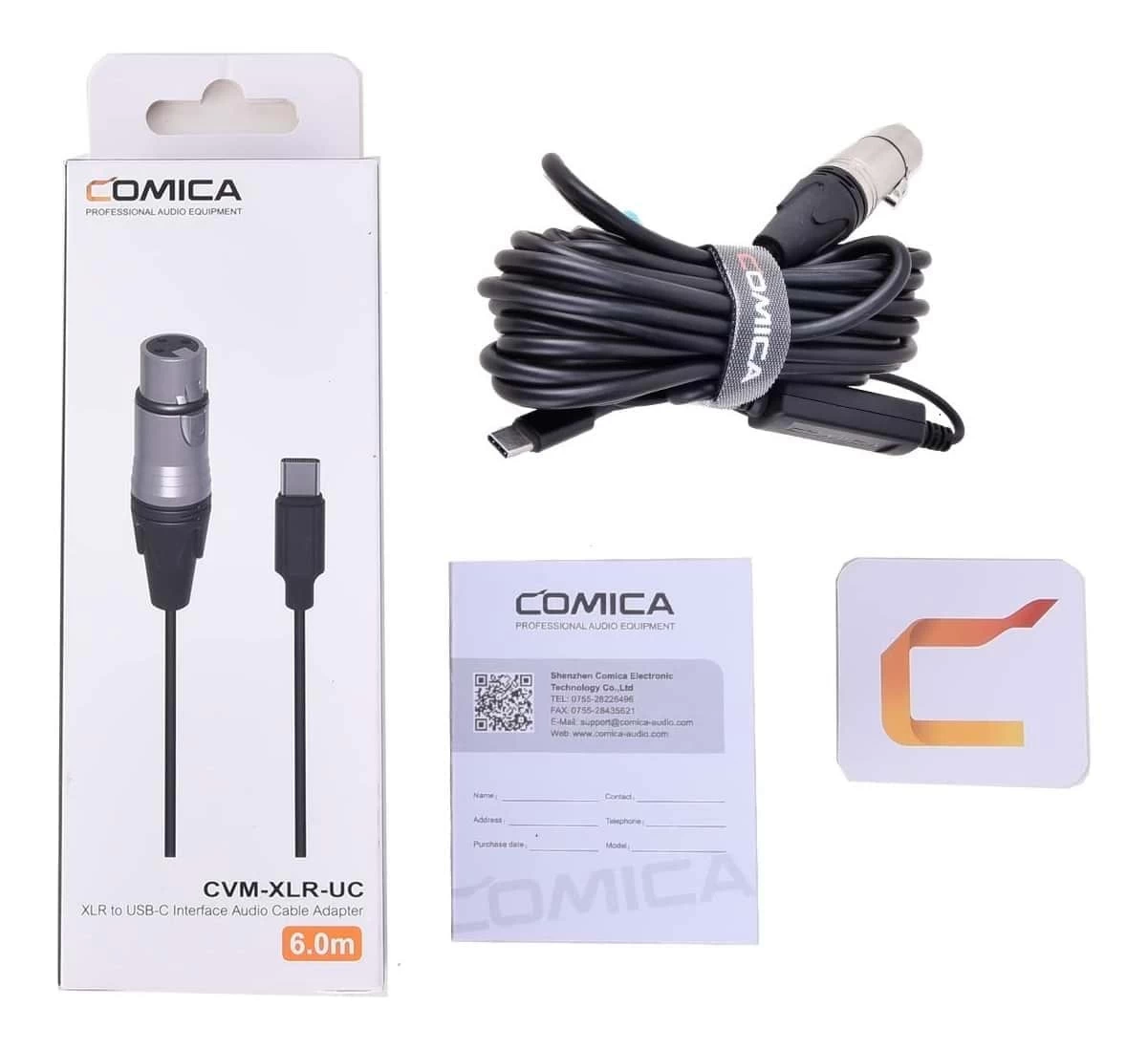 The XLR-UC audio-interface cable is used to record sound from a dynamic microphone or a battery-powered microphone into an Android smartphone or computer. The cable is compatible with Comica VP2/VP3 shotgun microphones, HRM-C handheld mic and similar mic.