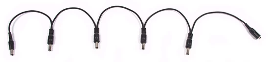 The SWAMP DC-5 Daisy Chain plugs into the end of the cable from a 9v AC adapter (DC current), you can then power up to 5 pedals at once from a single ac adapter. Makes setting up for your pedals and laying out your pedal board a whole lot easier.