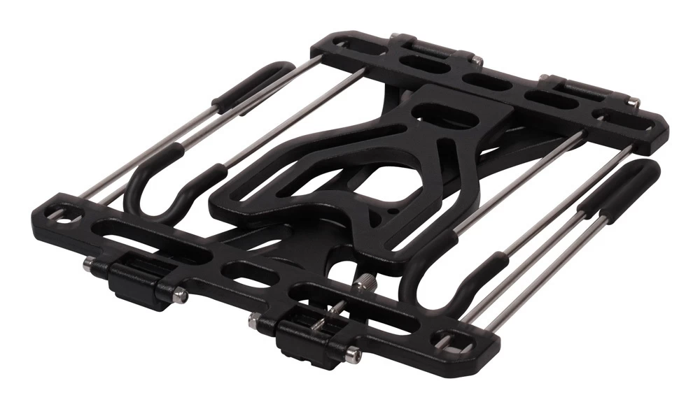 The LS500 DJ Laptop Stand from SWAMP is made from a strong but light aluminum structure, with a minimalist design that is also easy to setup and operate. The middle shelf can be adjusted to sit at 3 different positions.