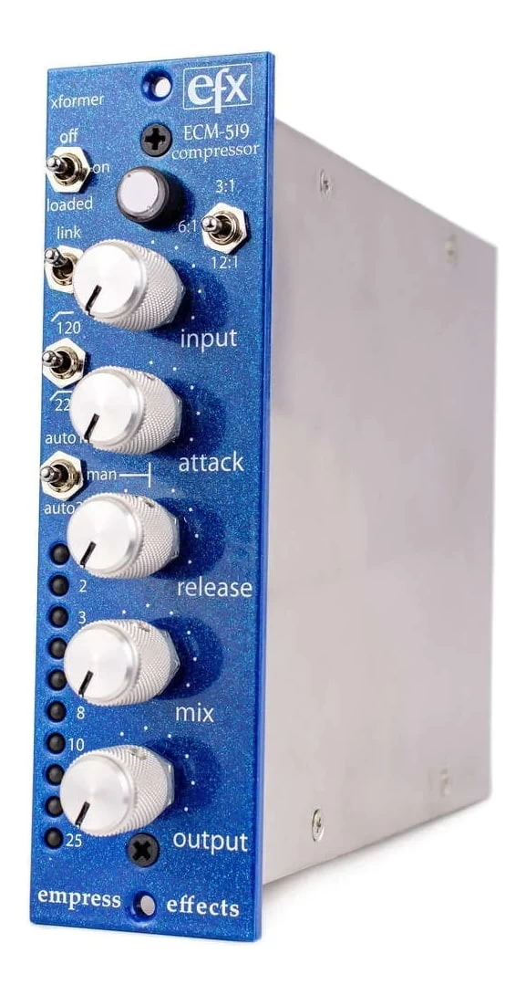 The Empress Effects ECM-519 is a superb 500 Series Compressor, one which has gained a following with top studios around the world. Extremely transparent, musical, versatile, great on aggressive settings, incredible gain reduction, and with auto modes.
