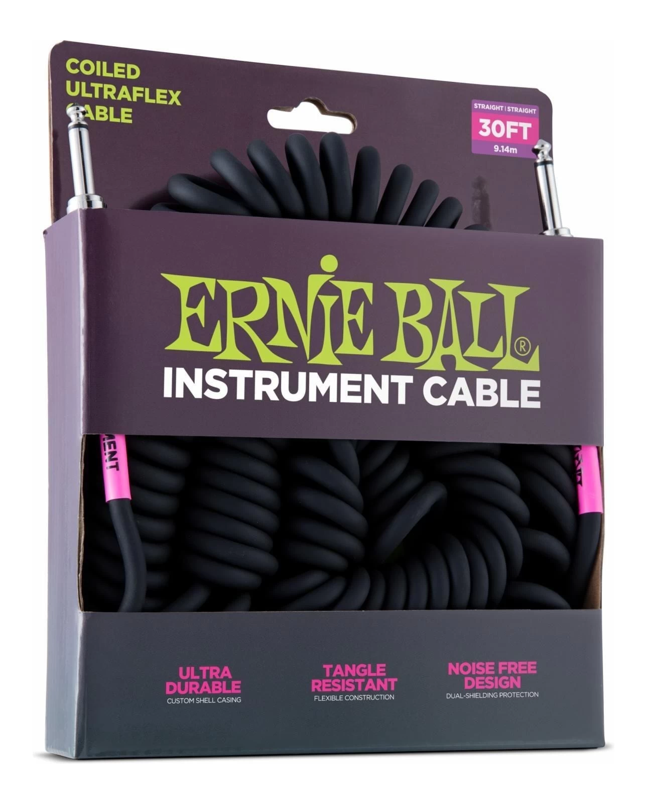 Ernie Ball 6044 Instrument Cable – Black Curly Cable – Straight to Straight Connectors