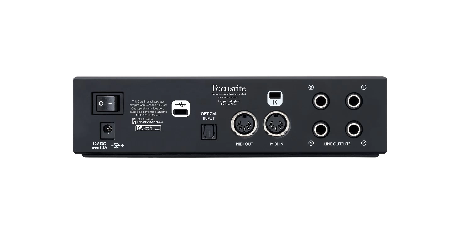 Focusrite Clarett 2Pre USB is an audio interface that has been designed to deliver high performance microphone pre-amplification with transparent audio conversion, in a low-noise, low-distortion lightweight unit. The dynamic range of the Interfaces in this range is 119dB, and users have the choice of either USB bus power (3A @ 5V 15W USB Type-C ports) or the included 12V power supply. The Clarett 2Pre USB is equipped with two, high-headroom mic/line/instrument inputs that are ideal for recording everything from condenser mics to hot pickups, without distortion. Each mic pre has a separate gain knob that makes it easy to set the correct input level. The interface also provides four line level outputs (two of these can be used to output the entire mix to monitors), MIDI I/O, and eight channels of ADAT inputs to expand your setup. The front panel features a 1/4″ headphone output with independent volume control and a pair of +48V phantom power switches to provide power to condenser microphones.