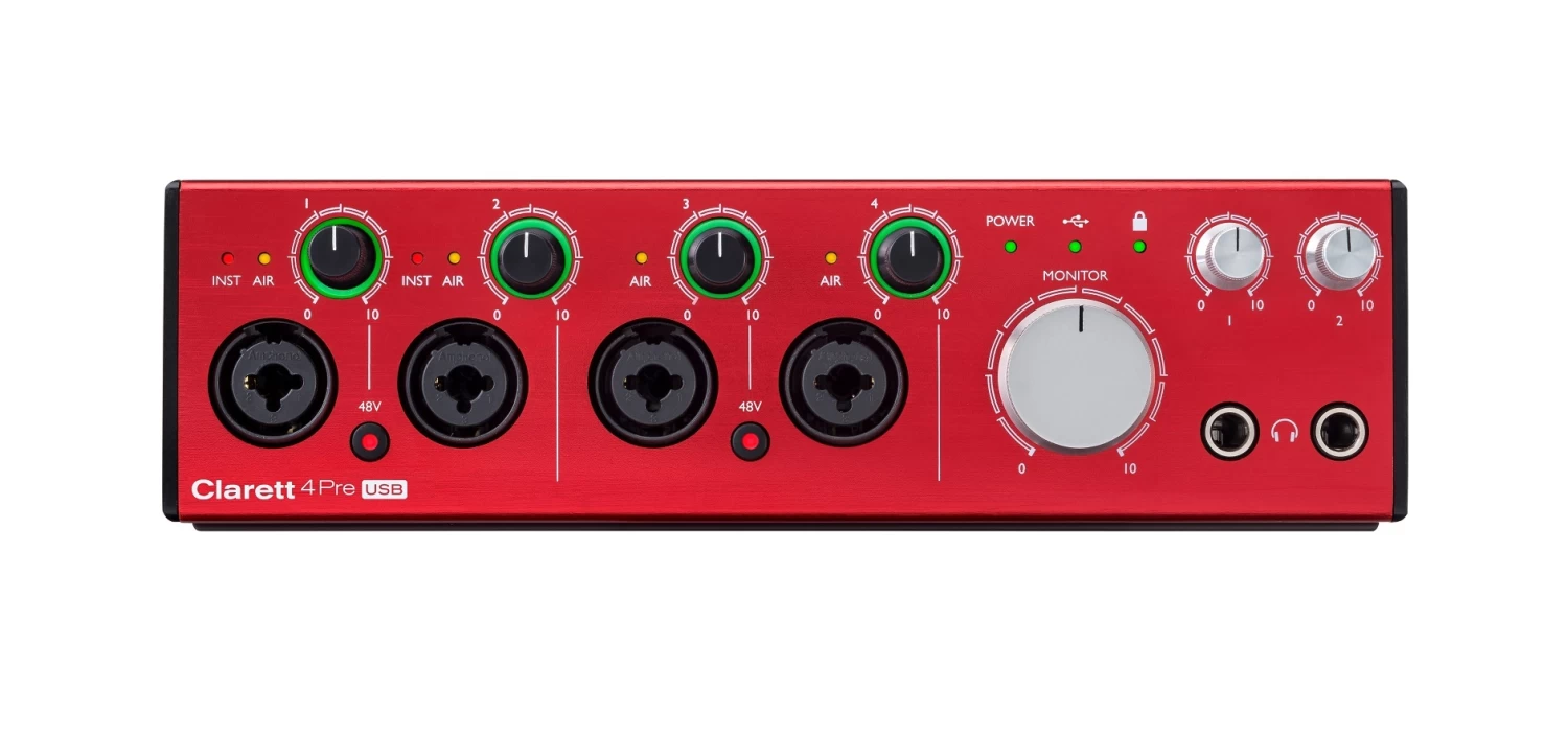 Clarett series Interfaces record with super-low latency and each channel can enable “AIR” mode to replicate the analogue sound of Focusrite’s classic transformer-based ISA preamps.
