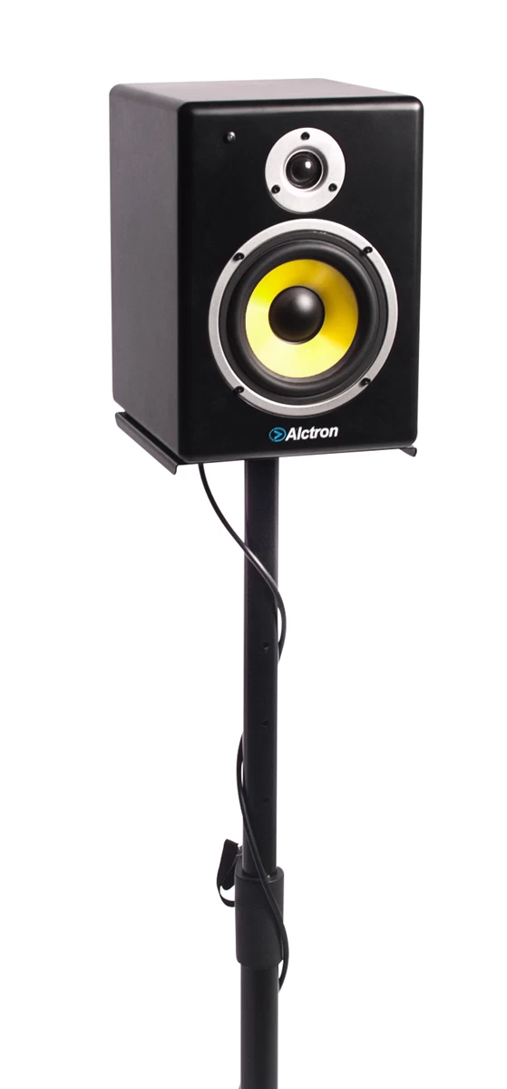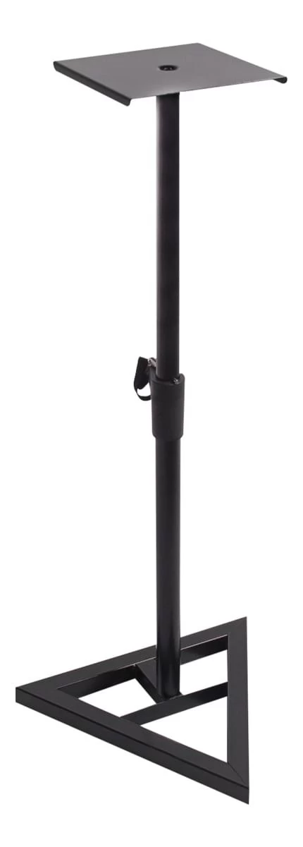 Features a heavy duty all metal construction, with a solid triangular base and metal speaker shelf. The vertical pole is adjustable from anywhere between 83cm and 116cm. Making this a great option as a stand for 5″ and 6″ monitor speakers.
