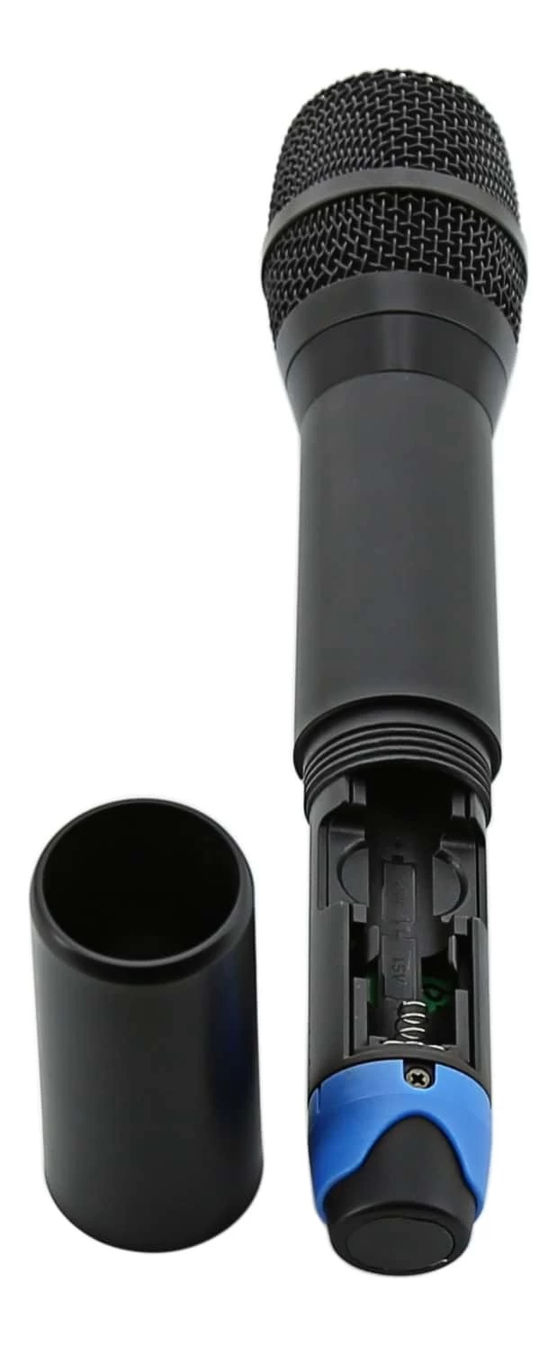 The included wireless vocal microphone is suitable for capturing speech and live singing performance. The frequency response is very flat and clear sounding, spec’d as flat from 50Hz-16KHz. The mic features a backlit LCD display showing the operational status of the microphone, including current group, channel, battery charge, and lock status. This microphone is perfect for function venues, weddings, seminars and other situations with multiple or animated/mobile speakers. The broadcasting range of this mic is 520-541MHz, making it both legally and functionally suitable for most areas of Australia.