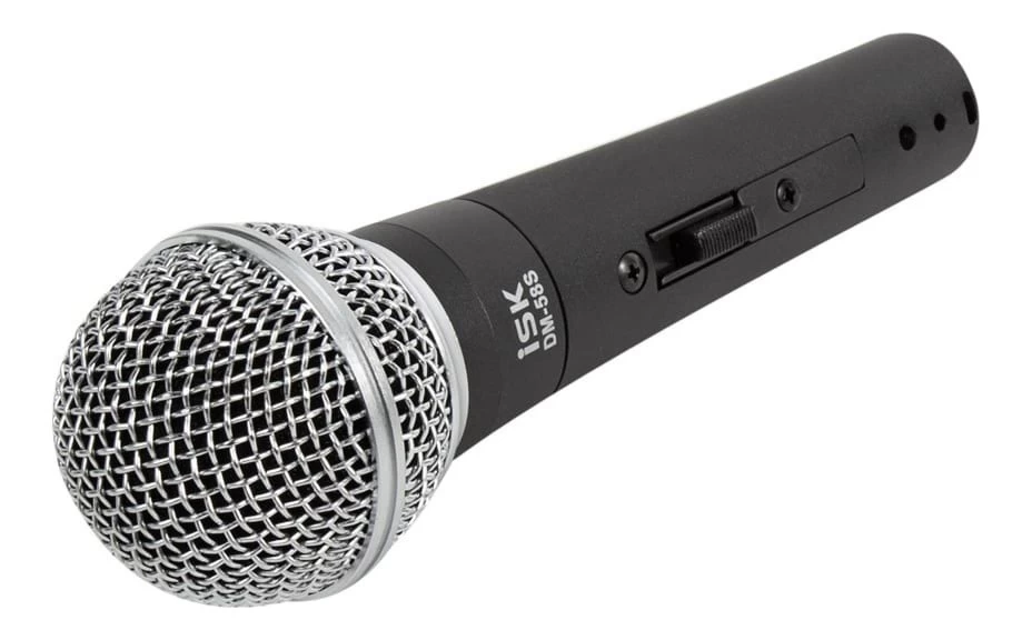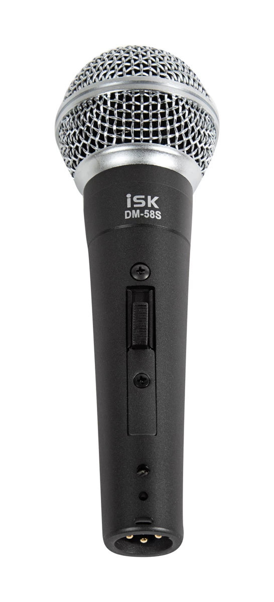 The iSK DM-58S uni-directional (cardioid) dynamic vocal microphone is designed for vocal use in live performance, sound reinforcement, and studio recording. The DM-58S features an on/off switch, something which is not commonly found on professional microphones yet has a large number of convenient on stage uses.