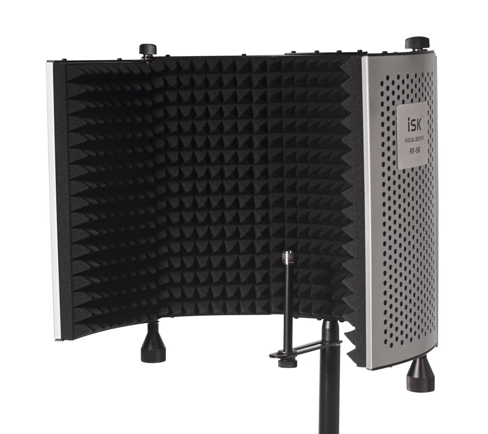 iSK RF-5 reflection filter is a stylish portable vocal booth system that can be used to isolate a microphone when recording, to reduce room ambiance, reflected sound and external noise. The RF-5 is perfect for home studios and location recordings where a room may not have acoustic treatment. The booth can be mounted on any standard mic stand.