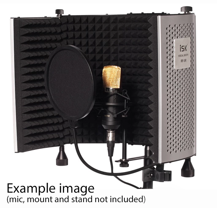 iSK RF-5 reflection filter is a stylish portable vocal booth system that can be used to isolate a microphone when recording, to reduce room ambiance, reflected sound and external noise. The RF-5 is perfect for home studios and location recordings where a room may not have acoustic treatment. The booth can be mounted on any standard mic stand with a tripod base.
