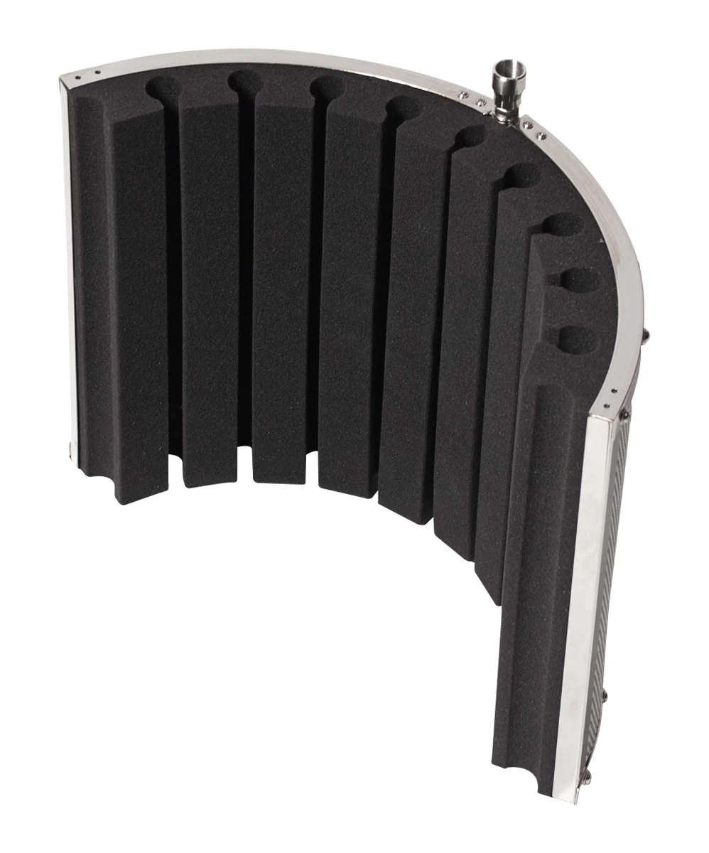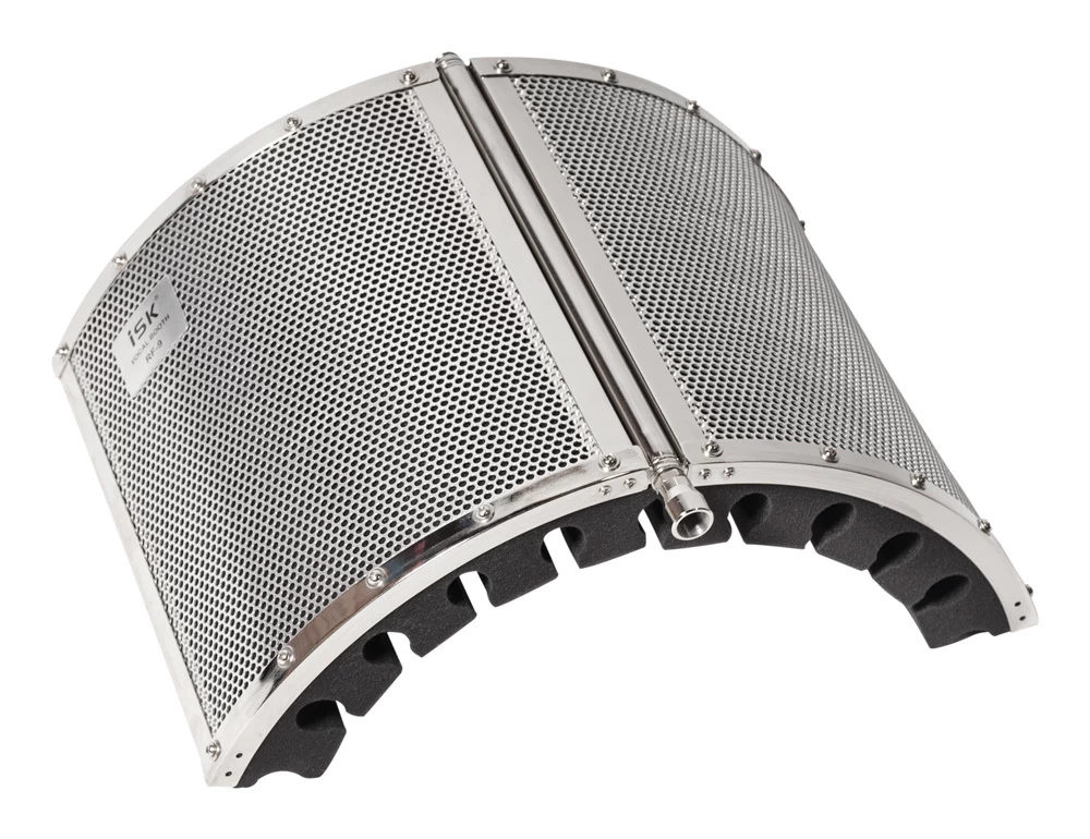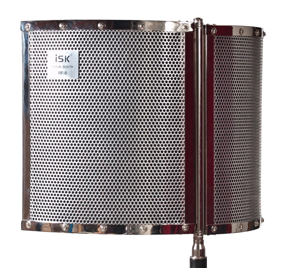 iSK RF-9 is a stylish portable reflection filter that can be used to isolate a microphone when recording, to reduce room ambiance, reflected sound and external noise. The RF-9 is perfect for home studios and location recordings where a room may not have acoustic treatment. The booth can be mounted on any standard mic stand.