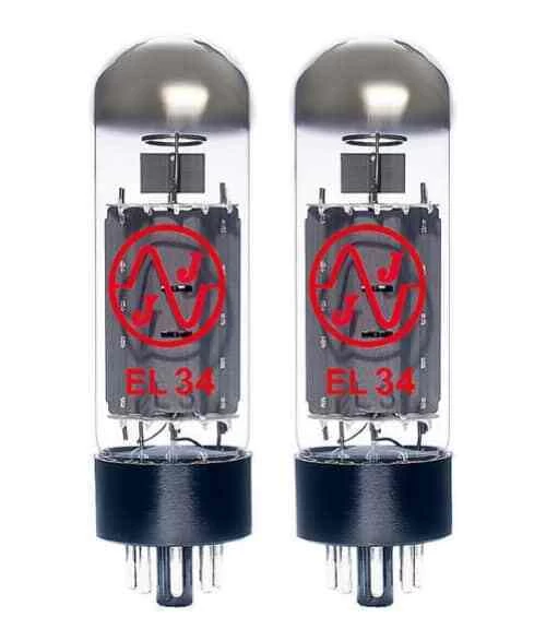 The JJ Electronic EL34 is a matched pair of octal power tubes with a maximum plate power of 25W. Very robust and reliable due to its internal construction. Provide tight lows, a rich and dynamic mid range and clear highs. Great for guitar amps and studio.