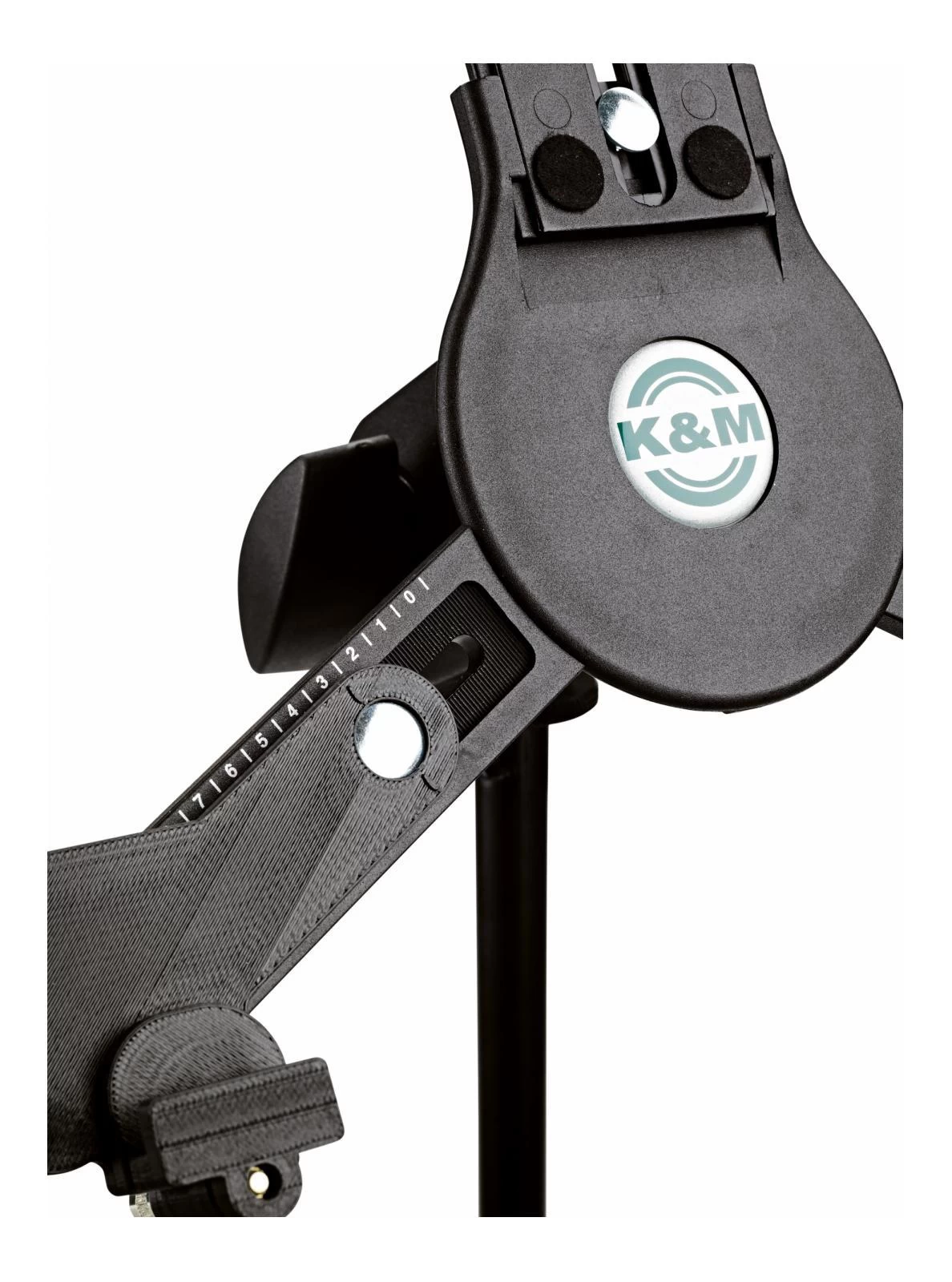 The individually adjustable support arms can accommodate the use of tablets ranging in height from 222 to 334 mm and width from 128 to 232 mm (for example iPad, iPad Air, iPad Pro, Amazon Fire HDX 8.9, Samsung Galaxy Tab from 9.7, Google Nexus 9, Asus Transformer or Microsoft Surface as well as Surface Pro). The depth of the tablets can vary between 6 and 11 mm. For the first use of the tablet holder the support arms settings are made by adjusting the clamp screws to the size and depth of the tablet. For other uses the tablet can be attached and detached quickly and simply through a snap lock. This provides maximum flexibility and mobility. A handy wing nut allows one to adjust the angle, so that each user will easily be able to find their ideal individual position. The tablet can switch between portrait and landscape positions. The tablet is kept in place, there is no danger of the tablet switching position by itself.