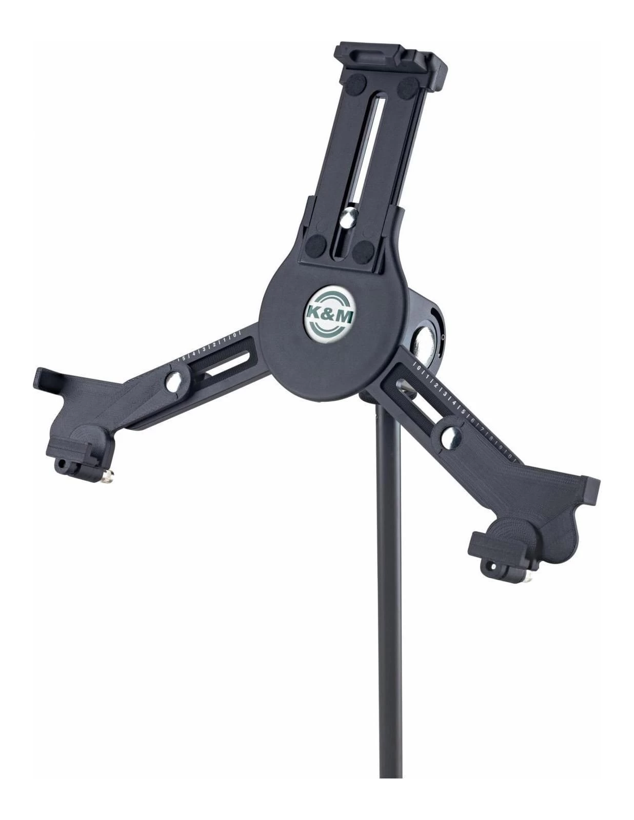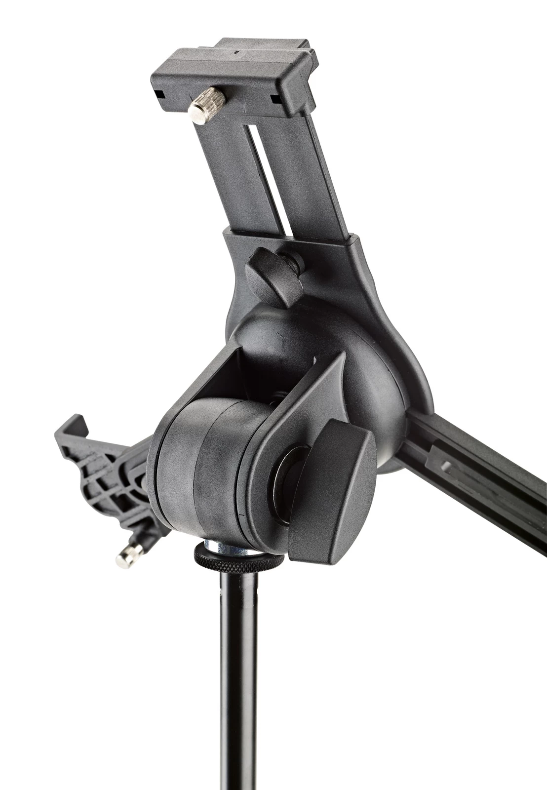 This tablet holder providing a safe and secure mount by threading onto a microphone stand. It can be adjusted variably to accommodate different tablet sizes without needing tools and holds the devices securely and effectively for many different situations – on stage, in rehearsal rooms or at home. Thanks to the 3/8″ female thread, the holder can be attached to any microphone stand quickly and simply.