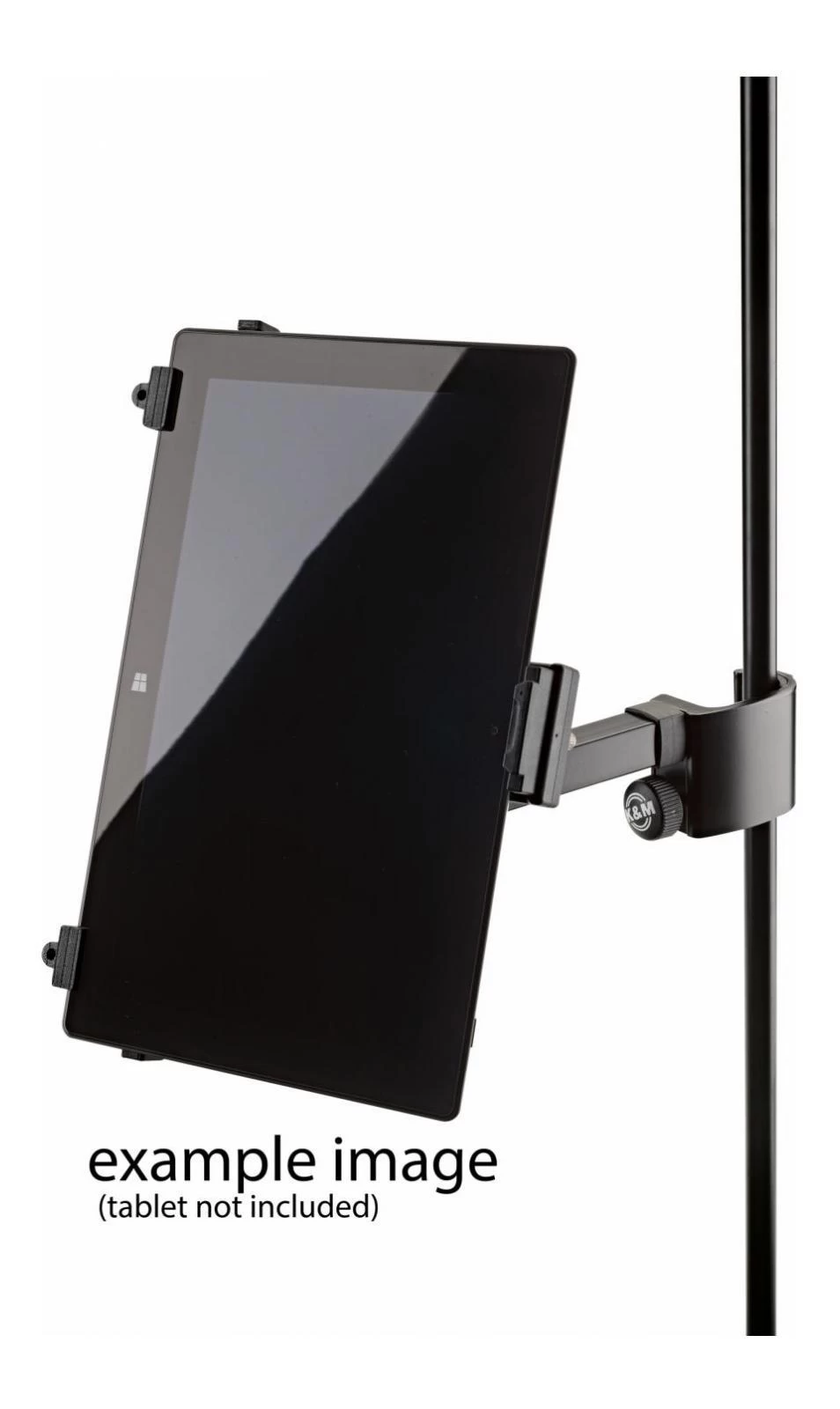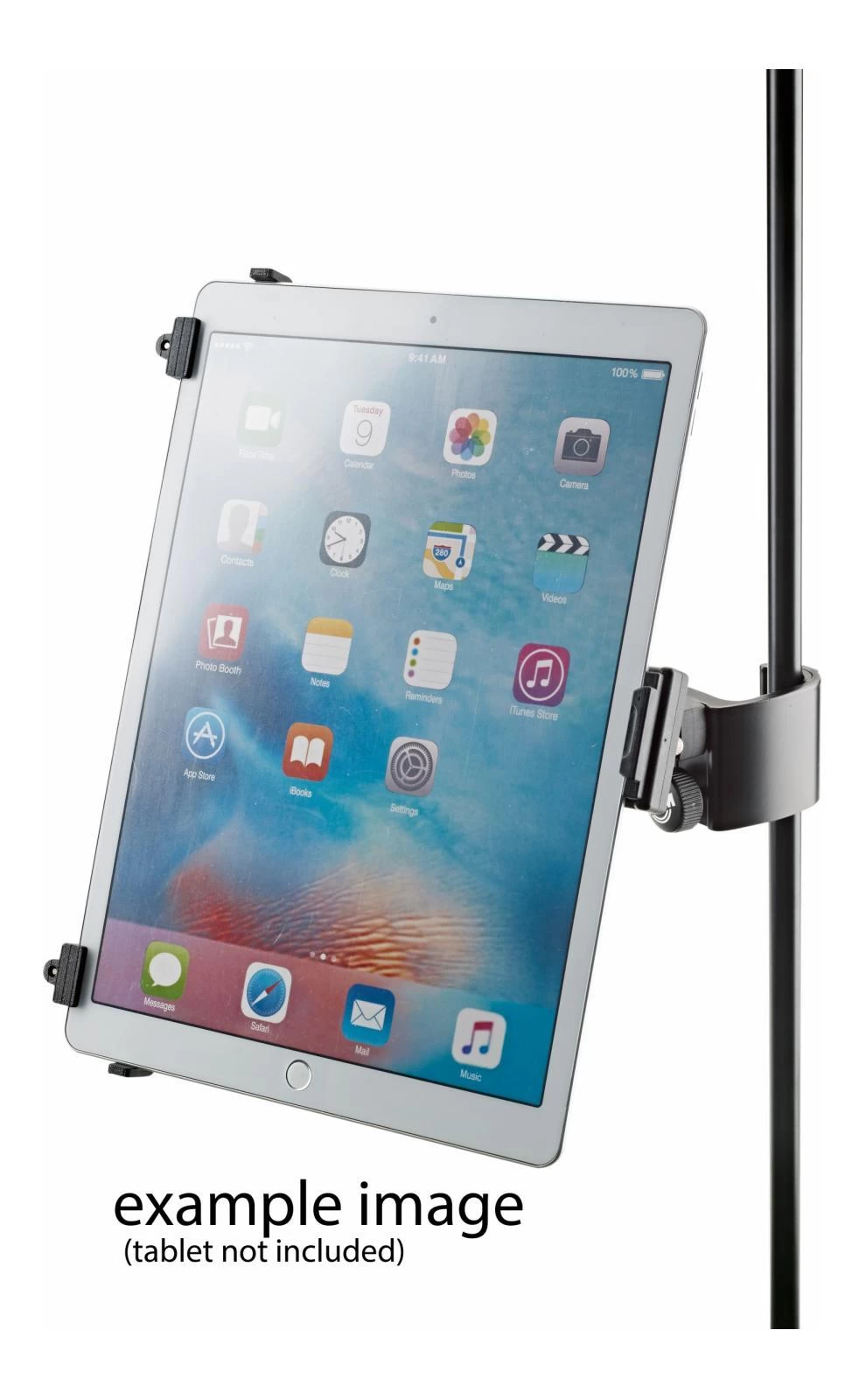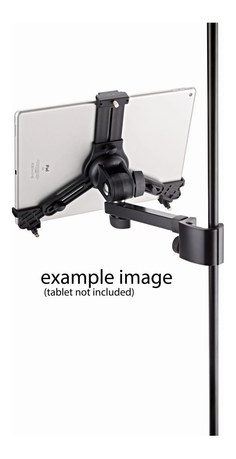 If you are looking for a universal tablet holder that clamps onto a microphone stand, then this is the ideal holder for you. It can be adjusted variably to accommodate different tablet sizes without needing tools and holds the devices securely and effectively for many different situations. Thanks to the strong clamp element with the ergonomic clamp screw, the holder can be attached to any tube up to 30 mm quickly and easily.