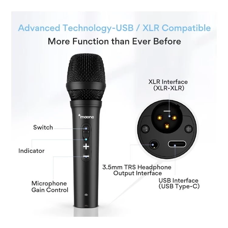 The Built-in cardioid capsule can capture sound in front of the microphone and reduces possible background noise from the other side and rear. Smooth, extended frequency response for rich and natural vocal reproduction. The Maono HD300T brings live sound home and packs the best bang for the buck when it comes to vocal recording. It delivers the best traits of dynamics that result in smooth and undistorted sound, saving you from buying expensive equipment such as preamps and digital interface that are otherwise necessary for connecting a dynamic XLR microphone to a computer. Professional handheld dynamic microphone with USB/XLR dual-mode output. USB digital output connects to a computer, pc, mac, and XLR analog output connects to a mixer, audio interface, or portable PA system. Ideal for podcasting, recording, live streaming, vocal, voiceover, singing, home-Studio, content creation.