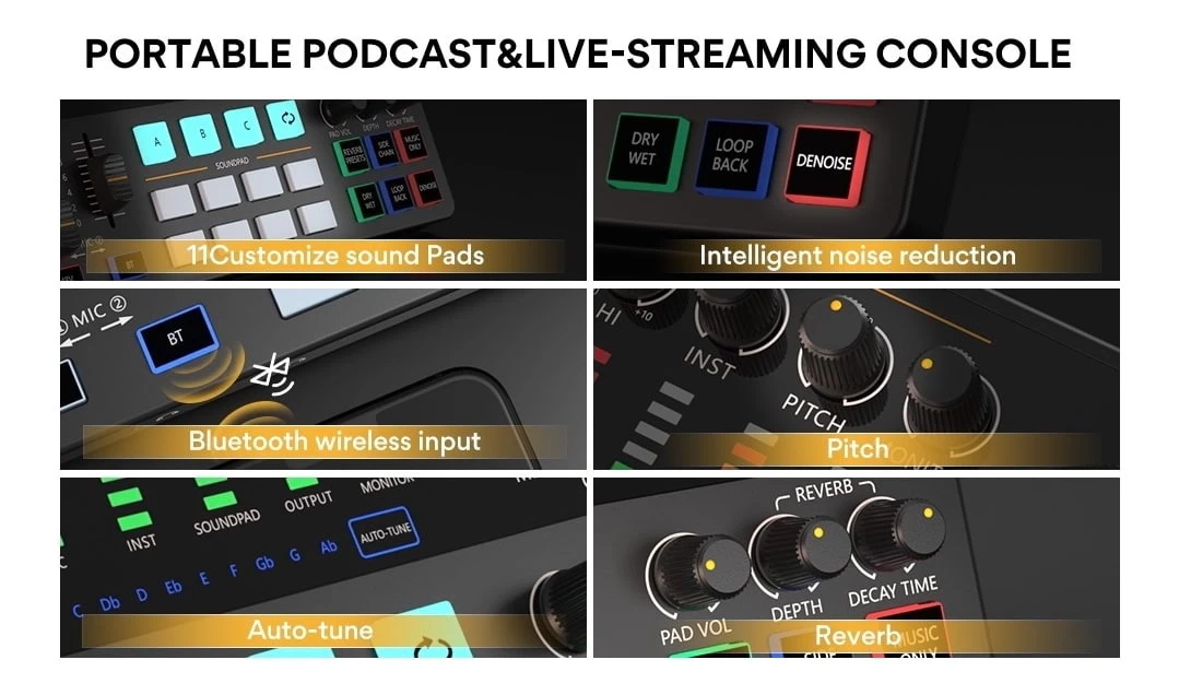 – Each Mic, Soundpads, Monitor, Input, and Output Volume can be adjusted individually to enjoy your podcast. - Intelligent noise reduction