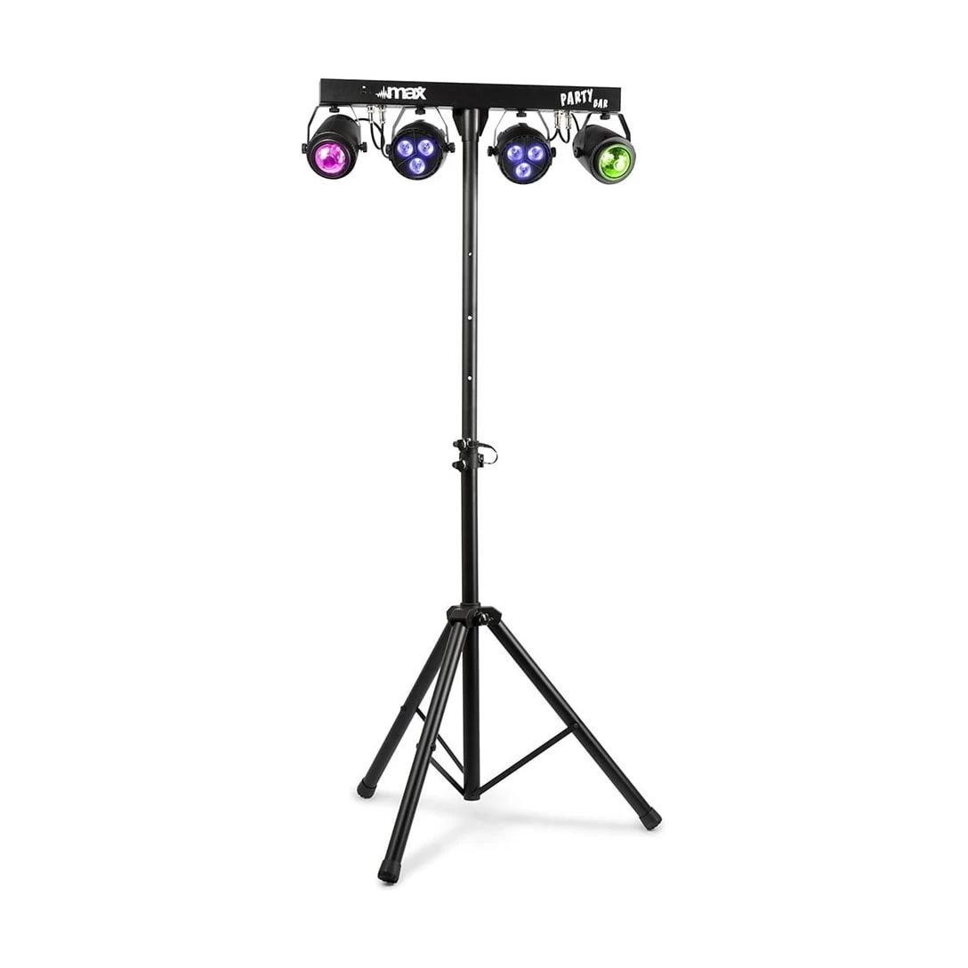 Here is a great lighting kit to boost up your party atmosphere. It consists of 2x LED Parcans with 3x 3W 4-in-1 LEDs; 2x Jellymoons with 4x 3W RGBW LEDs, and a lighting stand with a max height of 1.8m. Remote controlled, DMX, stand-alone mode, RGBW mixing.