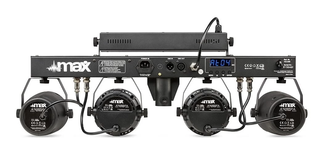 The MAX PartyBar10 offers a complete lighting fixture packed with spectacular LED effects. It includes (2x) Jelly Moon 4x 3W 4-in-1 LEDs, (2x) PAR 3x 3W 4-in-1 LEDs as well as (1x) UV/Strobe 6x 2W UV/White LEDs.