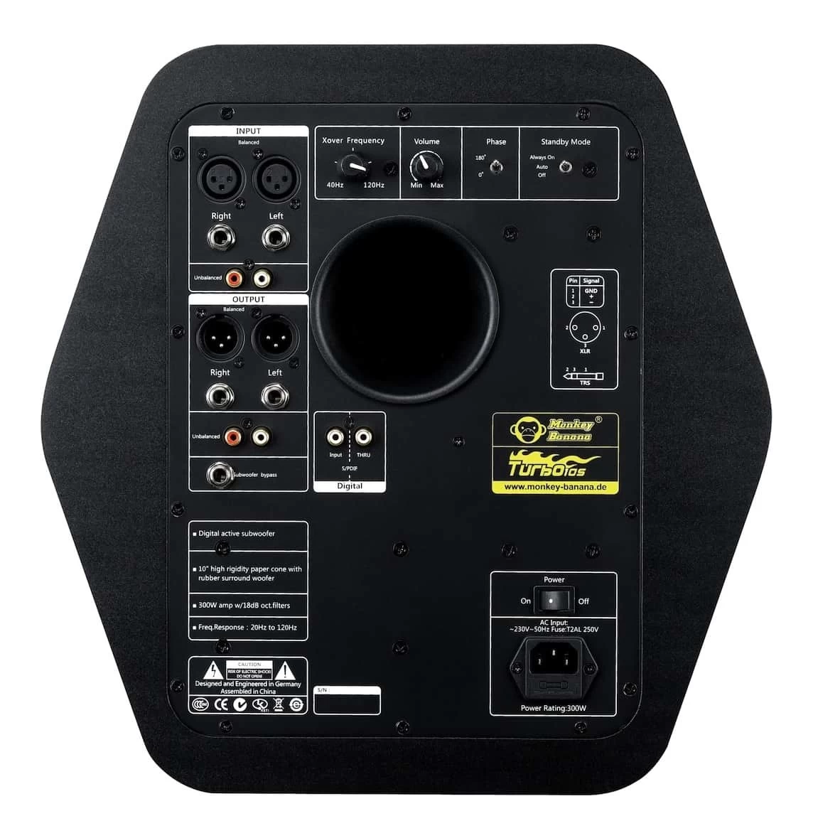 Featuring balanced XLR and TRS and unbalanced RCA left/right inputs, balanced XLR and TRS left/right outputs, and a dedicated XLR Sub out and TRS Sub Bypass, the Gibbon 10″ can be connected into multiple setups and speaker configurations.