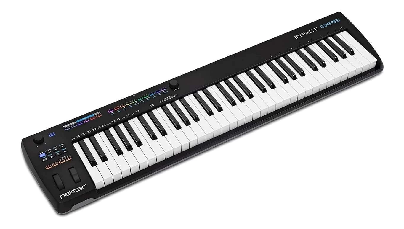 The Nektar Impact GXP61 MIDI Controller Keyboard is a 61-note USB controller featuring semi-weighted keys and aftertouch, to greatly enhance your performance. With dedicated RGB LED buttons, 7 transport buttons for DAW integration, 3 fixed velocity levels