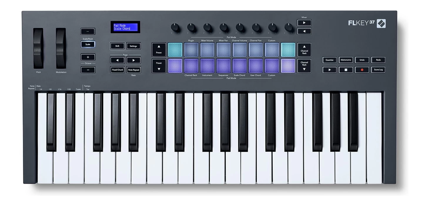 - Scale Chord mode – Play 32 pre-made chords in eight different scales straight from the pads (FLkey 37 only).