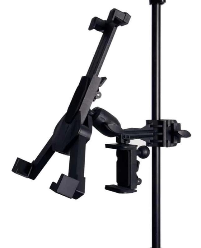 The On-Stage TCM1500 delivers ergonomic, in-performance access to your tablet or cell phone along with a world of attachment and orientation options. The tablet and cell holders, each of which boasts protective padding at all contact points, adjust from 8″ to 12″ in height to 3.5″ in width and 2.5″H x 4″W respectively. Meanwhile, the assembly adapter provides 180 degrees of tilt with full 360-degree rotation and accepts any standard 5/8″ – 27 threaded mic stand, or, with the included clamp, attaches directly to any .75″ to 1″ stand or desktop