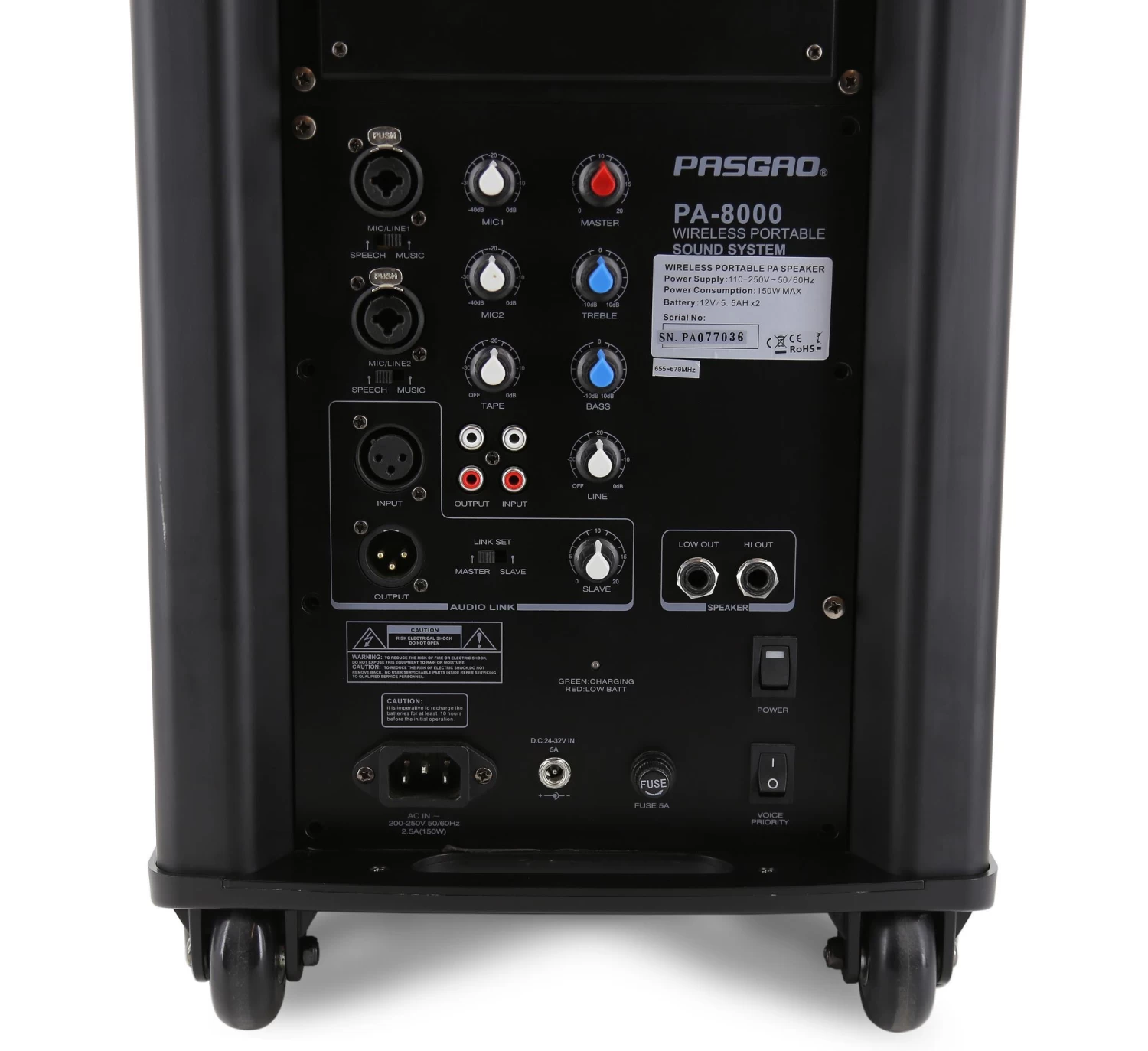 PA-8000 Portable PA Speaker with Dual Handheld Microphones